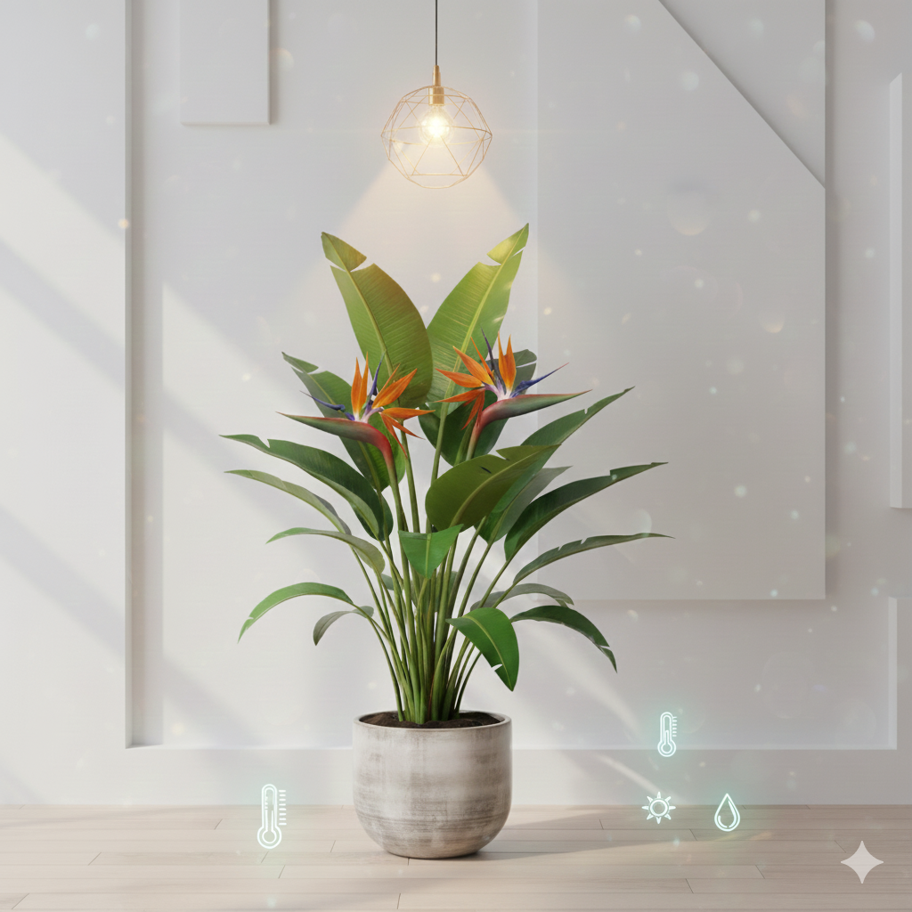 Strelitzia, yani starlıçe, büyük ve gösterişli yapraklarıyla ev ve ofislerde tropik bir atmosfer yaratan dayanıklı bir iç mekân bitkisidir. Sağlıklı gelişebilmesi için bol aydınlık bir ortam ister; özellikle filtrelenmiş gün ışığı starlıçenin büyümesini hızlandırır. Direkt güneş ışığına kısmen dayanıklıdır ancak uzun süreli öğle güneşi yapraklarda yanıklara neden olabilir. Sulama, starlıçe bakımında kritik bir noktadır: Toprak tamamen kurumadan sulamak fakat köklerin suda kalmasına izin vermemek gerekir. Yazın daha sık, kışın ise daha seyrek sulama yapılmalıdır. Geçirgen, torf ağırlıklı ve hava alan toprak karışımları bu bitki için idealdir; doğru toprak yapısı köklerin güçlenmesini ve yaprakların daha iri çıkmasını sağlar. 18–28°C arasındaki sıcaklık aralığı starlıçe için en uygun ortamdır ve düşük nem seviyelerinde bile dayanıklı olsa da düzenli yaprak fısfısı gelişimi olumlu etkiler. İlkbahar ve yaz döneminde ayda bir kez besin takviyesi vermek büyümeyi desteklerken, tozlanan yaprakları hafifçe silmek bitkinin daha iyi fotosentez yapmasını sağlar. Yaprak sararmaları genellikle aşırı sulama veya yetersiz ışık kaynaklıdır; kahverengi yaprak uçları ise düşük nemin göstergesidir. Doğru bakım uygulandığında starlıçe yıl boyunca güçlü formunu korur ve mekâna modern,doğal ve etkileyici bir görünüm kazandırır.