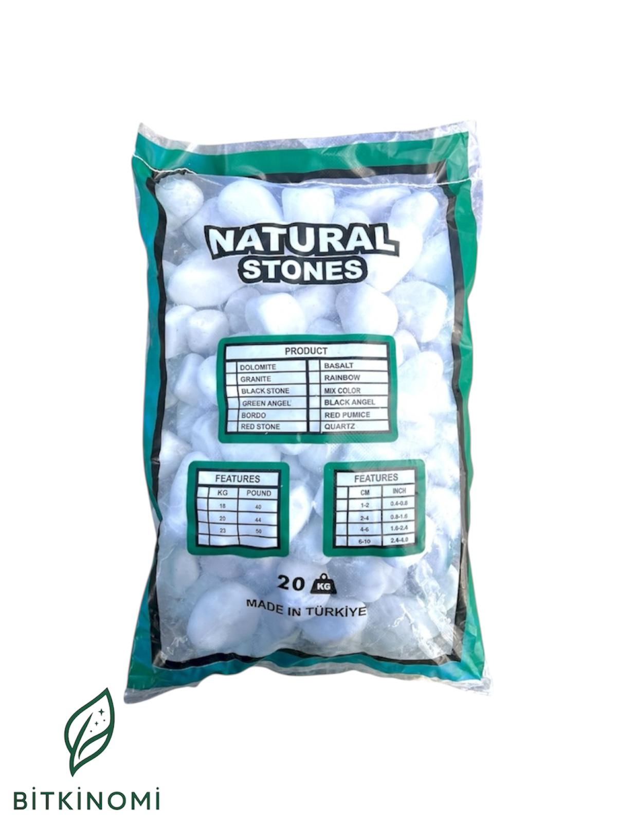 Beyaz dolomit dekoratif taş 4-6 cm, doğal ve dayanıklı yapısıyla bahçe, saksı ve peyzaj uygulamalarında modern, aydınlık bir görünüm sağlar.